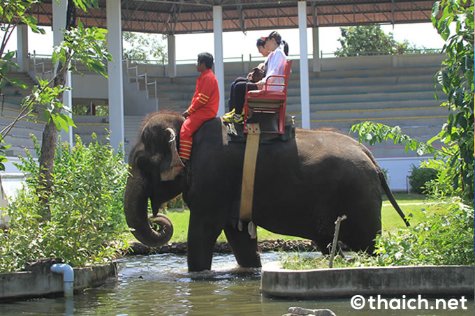 バンコク中心部からタクシーで200バーツから300バーツほどで気軽に訪れることができるサムットプラカーン県の「サムットプラカーン・クロコダイルファーム&ズー(Samutprakarn Crocodile Farm & Zoo)」(外国人の入場料金300バーツ)でも象に乗ることが出来ます。しかも激安!