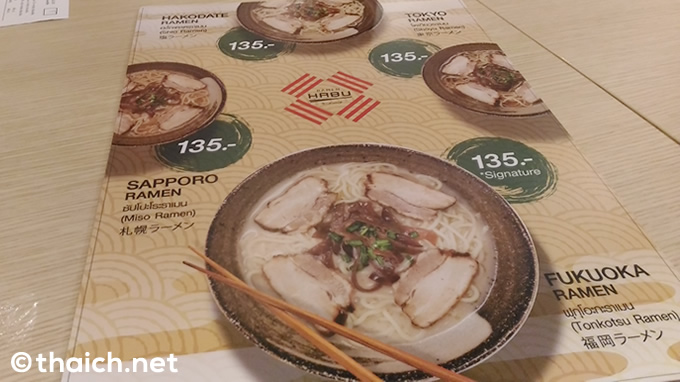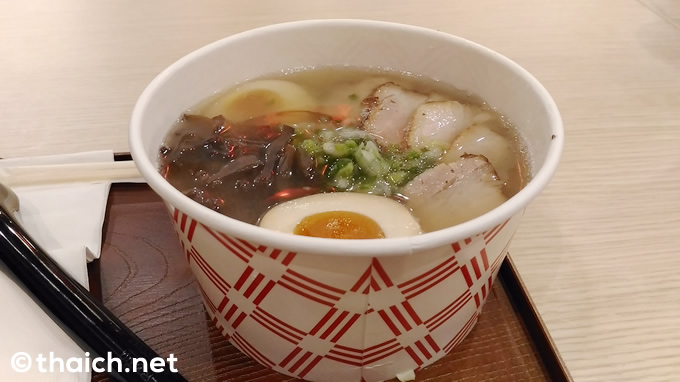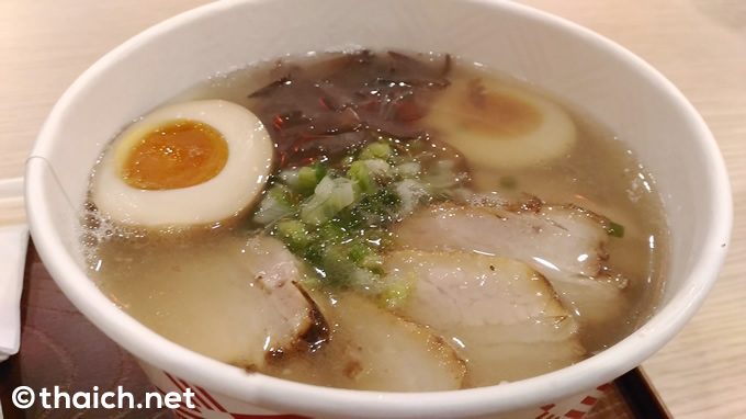 ラーメンの種類は塩ラーメン、東京ラーメン(醤油ラーメン)、札幌ラーメン(味噌ラーメン)、福岡ラーメン(とんこつラーメン)の4つで塩ラーメンを選択。「ラーメン+緑茶セット」(150バーツ)とトッピングの「味付け玉子」(15バーツ)をオーダーです。
