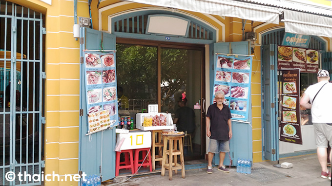 ターチャン船着場からナープララーン通りを東に向かって左手にある黄色の建物には、レストランやお土産物屋さんなどが入居。今回はその中のタイ料理屋さんでランチです。なお店名は、看板にも書かれていないため不明。