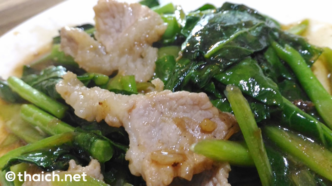 パッカナー(カイラン菜)と豚肉のオイスターソース炒めは70バーツ。