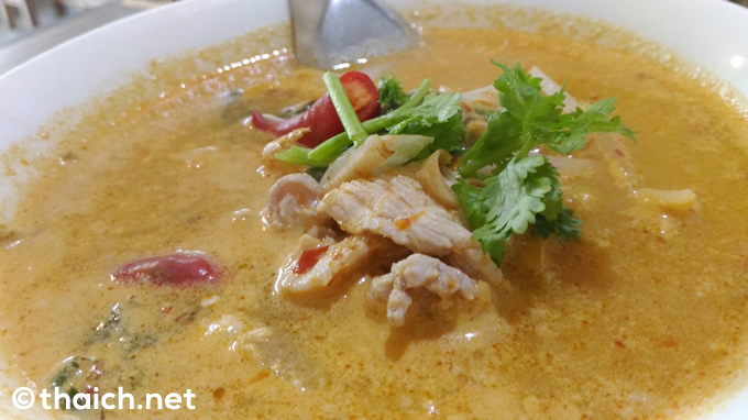 辛くて酸っぱい豚のトムヤムスープは120バーツ。そいうえば豚のトムヤムスープ(トムヤムムー)は初めて食べます!トムヤムスープは海老などのシーフードを入れるのが一般的ですが、お肉もOKなんですね。