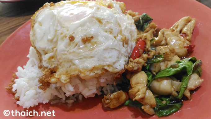 ガパオライスは目玉焼きが乗って55バーツ。これも定番タイ料理ですね。
