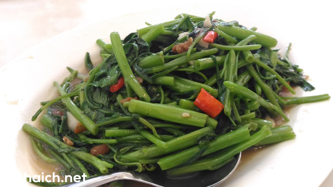 これは「パックブン炒め」(小 120バーツ)。タイ料理の定番の空芯菜いためですね。