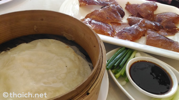 そしておまちかねの「北京ダッグ」(350バーツ)です!オーダーしてから出来上がりまで30分くらいはかかるので、最初に注文しましょう。