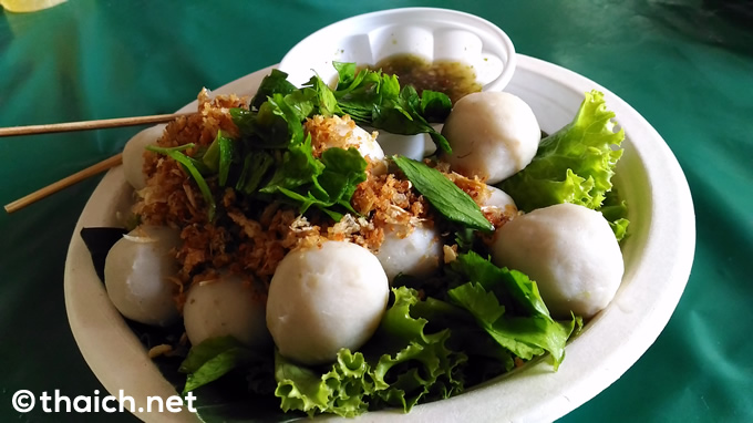 不可とした歯ざわり舌触りが美味しいフィッシュボール「ルークチンプラー(ลูกชิ้นปลา)」は50バーツ。