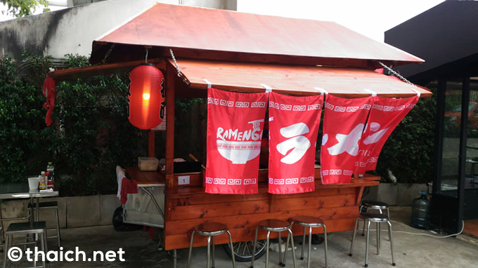 洒落たレストランが点在するバンコク・ラマ9世通りソイ49にある、屋台スタイルのラーメン店「ラーメン ア(RAMENGA ราเมงอะ)」に行ってきました。とは言っても、もともと「ラーメン ア」を目指して行ったわけでなく、たまたま屋台を見つけたので入ってみたのです。