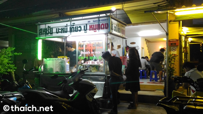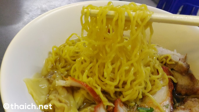 「バミーキアオ」は30バーツから。あとから知ったのですが、比較的珍しいカニ入りもあったんですね。そういえば屋台の看板にも「ปู หมูแดง(カニとチャーシュー)」とありました。