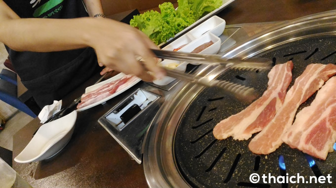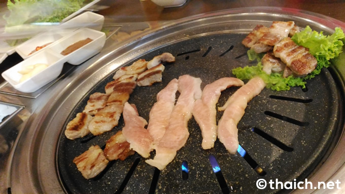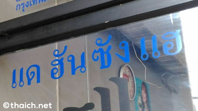 大きな店頭の看板にはハングルで「대항상회」とありますが、「デーハンサンフェ」というお店でしょうか。入口のガラス扉にはタイ語で「แดฮันซังแฮ」とありました。これを読むと「デーハンサンヘー」ですね。