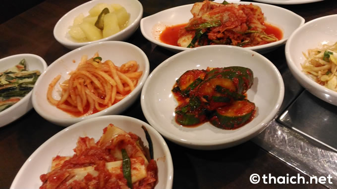 さらに韓国料理の楽しみと言えば、テーブルいっぱいにキムチなど小皿が並ぶことですね。これらは食べ放題です。