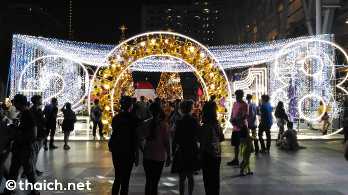 バンコクで、いやタイで最も派手なクリスマスイルミネーションで知られるセントラルワールド前広場は、たくさんの人で賑わっていました。カップルも女性同士も男性同士もお一人様も、みんな写真撮影に夢中です。