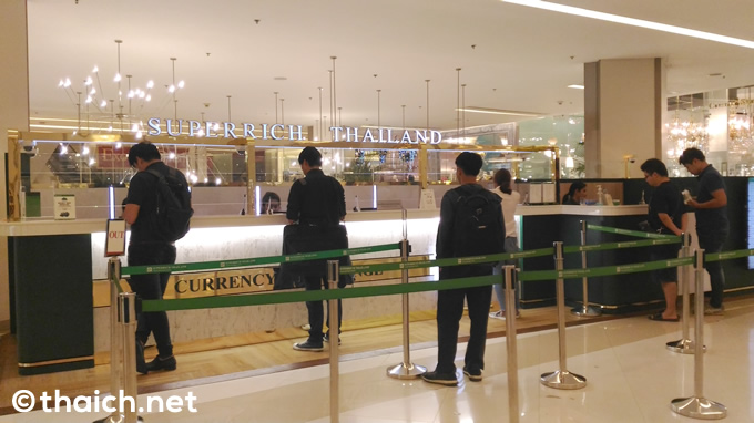 つづいて、3階にあるお馴染みのスーパーリッチ・タイランド(スーパーリッチには緑とオレンジがあって、こちらは緑の方)。レートは1万円=2875バーツです。これらも好レートですね。