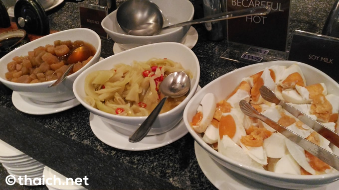 これはお粥のコーナー。並んでいるのはお粥によく合う塩漬け玉子など。
