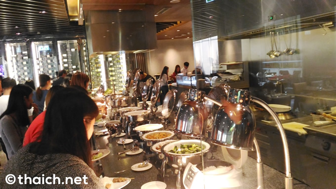 バンコク中心部のスラウォン通り(スリウォン通り)の「アマラ バンコク ホテル(Amara Bangkok Hotel)」地下1階にあるレストラン「エレメント(Element)」。夜はタイ・パッション料理のレストランですが、お昼はビュッフェスタイルの食べ放題になっています。価格は899バーツですが、2人で行けば1人は無料。つまり899バーツで2人が食べ放題なんです。そのため、多くのテーブルが予約で埋まるほどの大人気。