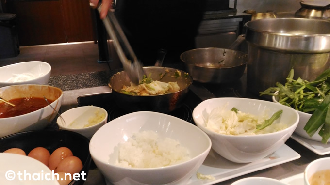 こちらはタイスキのコーナー。スープなしの「スキヘン(สุกี้แห้ง)」を作ってもらいました。