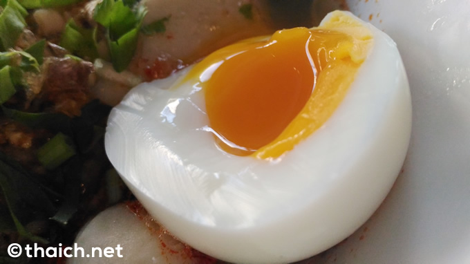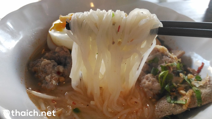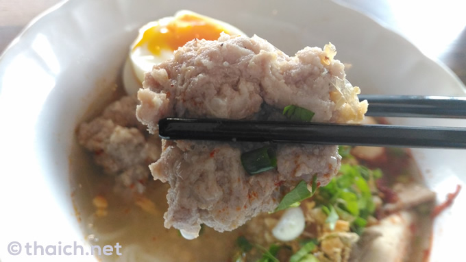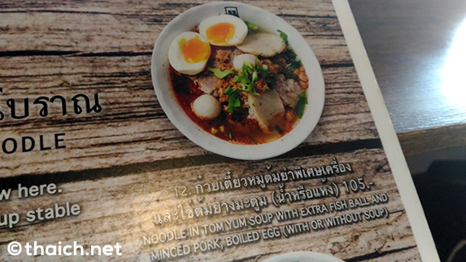 オーダーしたのは105バーツのこちら。商品名長い(笑)。玉子とフィッシュボールと豚ひき肉の入ったトムヤムヌードル。つまり具だくさんということです。