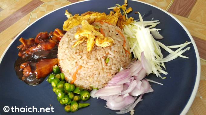 「カオクルックガピ」は具材とお米を一緒に炊き込むタイプでなく、後混ぜタイプ。ご飯と具材が別々になっていて、自分で混ぜるスタイルなので、韓国のビビンバに近いタイプでしょうか。