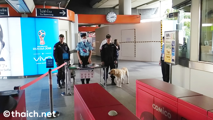 そんな中、BTSモーチット駅の改札で、警察官と二人と警察犬二匹がいるのを発見。恐らくですが、麻薬を見つける麻薬犬なのでしょう。ただ、そこに警察官と警察犬がいるのが丸わかりなので、犯人は改札を入る前に逃げていくでしょうね(笑)。