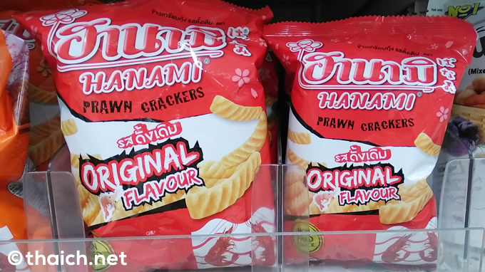 タイで売られているカルビー「かっぱえびせん」風スナックと言えば「HANAMI」ですね。タイでも「かっぱえびせん」は売られていますが、タイ人には「HANAMI」の方が人気だとか言う話も聞いことがあります。もちろんこのスタイルの本家は1964年発売開始の「かっぱえびせん」です。
