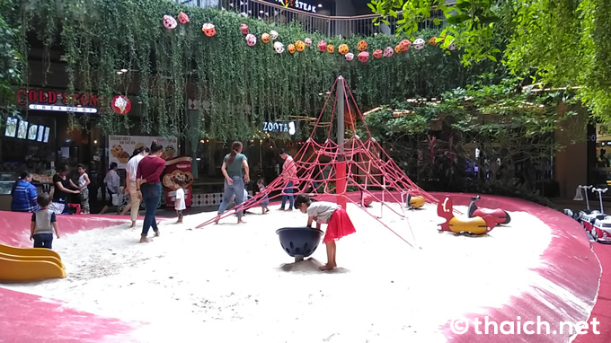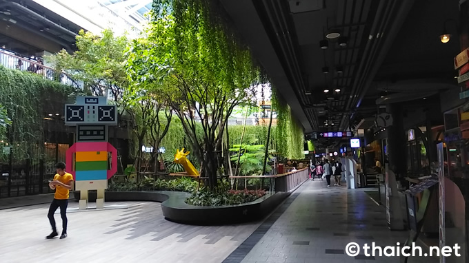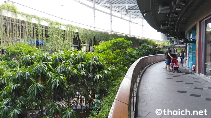 「セントラルフェスティバル・イーストヴィル」は、そのコンセプトの”Bangkok ESCAPE”のとおり、まるでバンコクから脱出したかのようなデパートなんです。広々とした中庭部分はご覧の通り緑が一杯。タイ南部ビーチリゾート・サムイ島にある「セントラルフェスティバル・サムイ」を彷彿とさせます。