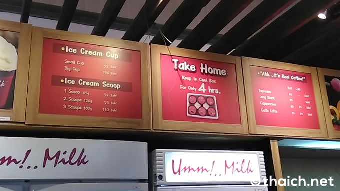 「Umm! Milk」はコラートまで行かなくてもチョクチャイ牧場の牛乳とアイスクリームが買えるお店。バンコクのデパートのあちこちに出店しているので、見たことがある人、買ったことがある人も多いですね。