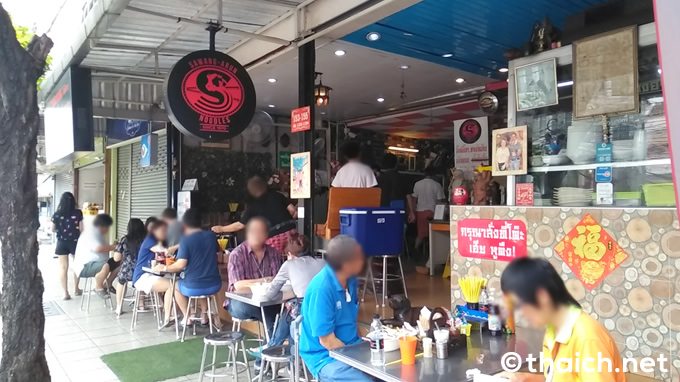 バンコク・チョクチャイシー通り(ラプラオ通りソイ53)は延々と商店街が続くような賑やかな通り。チョクチャイシー通りソイ25とソイ27の間を歩いているとお客さんで溢れているお店があったので入ってみました。それがタイヌードルの「サワーンアルン(สว่างอรุณ )」です。
