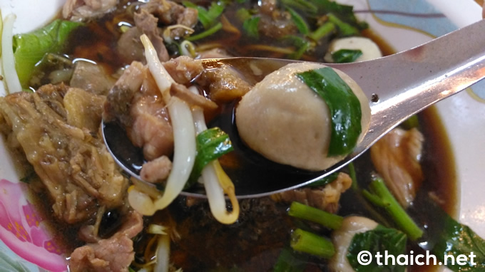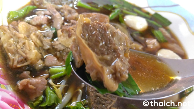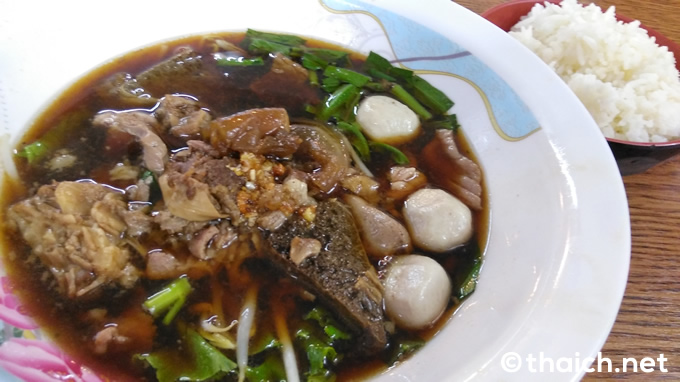 お客さんの多くが食べていたのが、麺を入れずに具とスープのみの「カオラオ(เกาเหลา)」です。ということで具材全部入りの「カオラオ」とご飯、お水を注文。価格は合計122バーツでした。