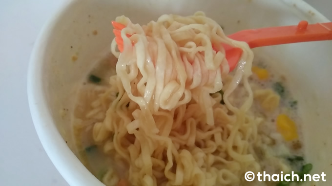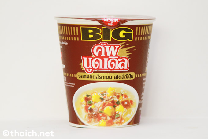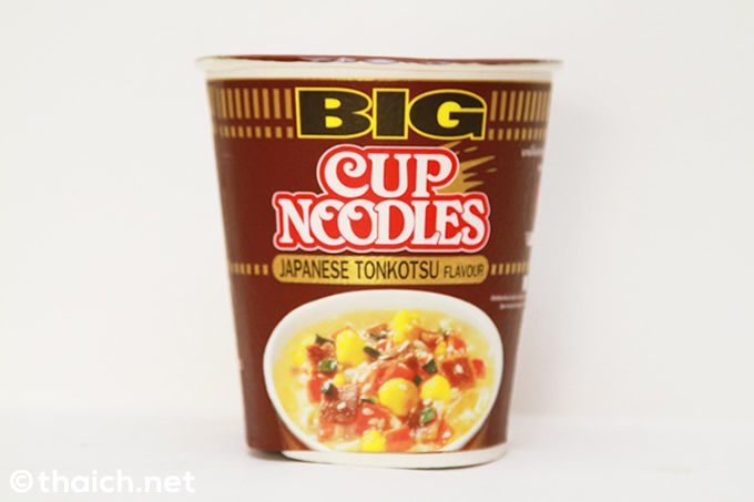 カップヌードル ビッグのジャパニーズとんこつ味(タイ語では รสทงคตสึราเมน สไตล์ญี่ปุ่น ロットトンコツラーメン スタイルイープン)は一個25バーツ。早速購入して食べてみました。