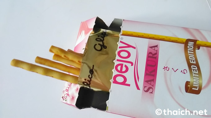 そんな「プジョイ」から、さくら風味が限定発売になりました。タイ人も桜といえば日本をイメージし、桜の季節になるとタイ正月休みと重なることもあって、それはそれは沢山のタイ人が桜を見に日本へ向かうのです。