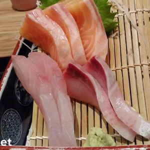こちらが、サラダ、味噌汁と寿司のセットで199バーツ。ご覧のとおり1貫の寿司にネタが二つ。これは食べ応えがありあすね。