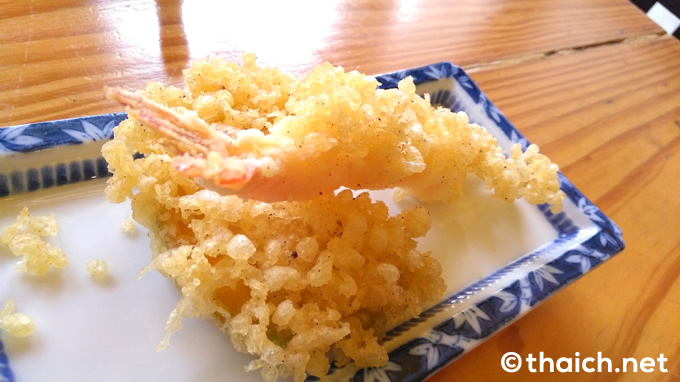 エビとカボチャの天ぷらが付いた「ざる蕎麦セット」(180バーツ)。