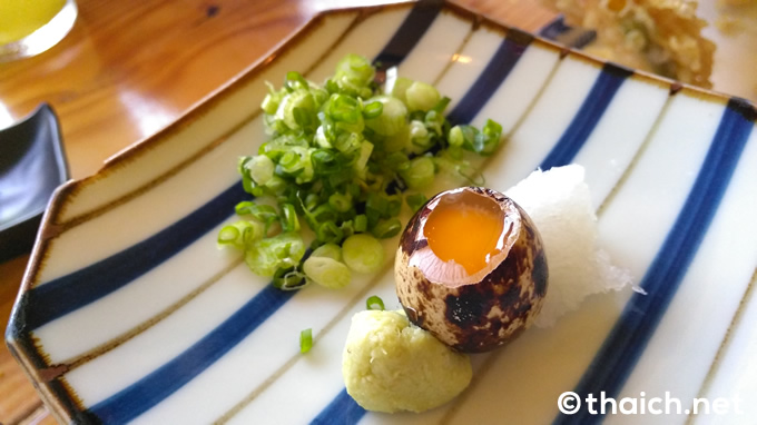 なんと日本のお蕎麦屋産のようにウズラの卵付きです。