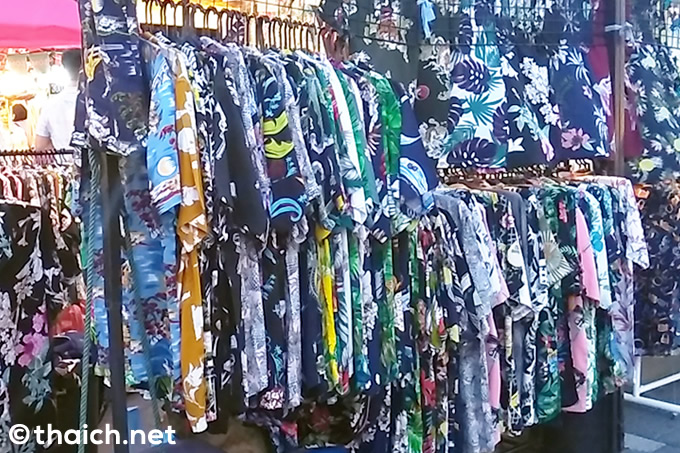マーケットではアロハシャツが一着250バーツ前後でお求め安い価格。種類もたくさん有るのでお気に入りの一着が見つかるかも。