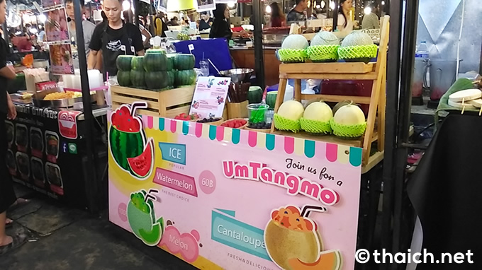 今回訪れたのが「UmTangmo」。フルーツをくり抜いた器に、シェイクをタップリ詰め込みます。ちなみに「UmTangmo」の「Tangmo」というのは、タイ語でスイカの事。