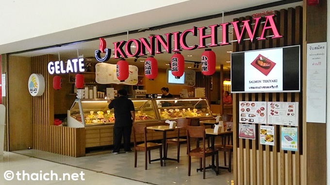 Bビルディングの1階にはタイ王国政府総合庁舎で働く人々や、そこへ訪れる人達のために、レストランやカフェや商店が並んでいます。今回は日本料理店「こんにちは(KONNICHIWA)」に入ってみました。