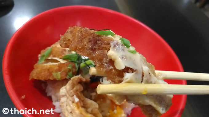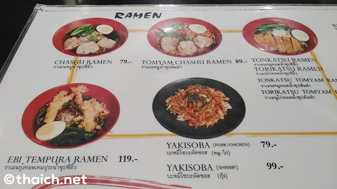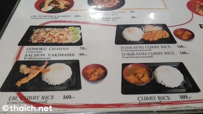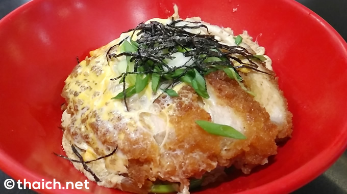 メニューは日本料理にしては比較的お安い設定。ラーメンや蕎麦や定食など、そこそこのラインナップの中で、カツ丼をオーダーしました。価格はカツ丼が99バーツ、水が15バーツ、氷が2バーツで、サービスチャージを合わせて支払いは127バーツでした。