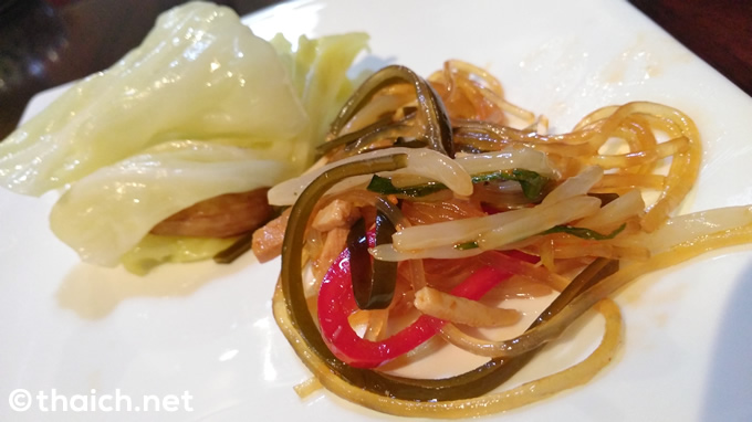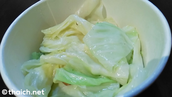 まずは「キャベツのニンニク炒め」(190バーツ)。