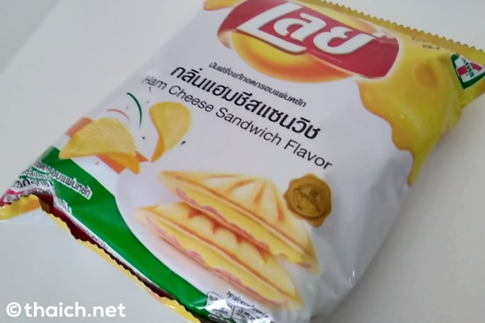 タイで最もよく見るポテトチップスブランドといえばLay’s。そのLay’sから「ハムチーズサンドイッチ味」が発売になったので買ってみました。ハムチーズサンドイッチはパッケージを見るとホットサンドですね。