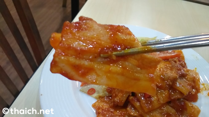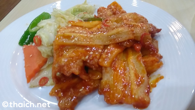 オーダーしたのは250バーツの「豚焼き肉セット」と20バーツのお水。お水は女性店員さんが、グラスの中身が少なくなる度に注いでくれました。また、料理を待っている間に他の席を見ていたのですが、女性店員さんが冷麺の味の調整までしていました(笑)。お酢をかけたり、調味料を入れたり、そこまでしてくれるのかとビックリ!