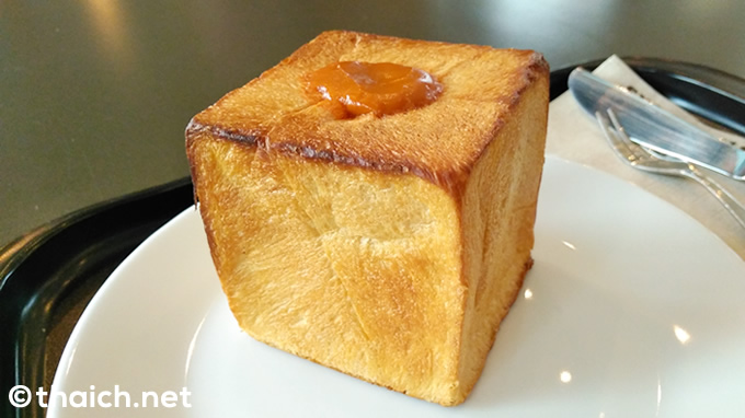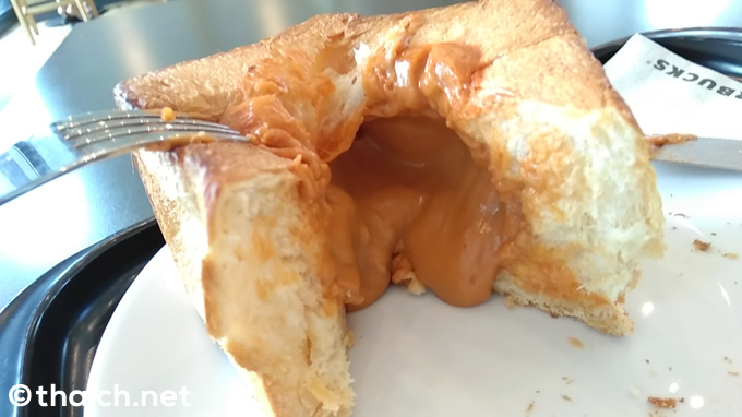 この日の朝は、どうしても食べたい新商品があって「スターバックス」へ。それがこの「Thai Tea Brix」(85バーツ)です。タイ語では「カノムパンサイチャータイ(ขนมปังไส้ชาไทย)」。