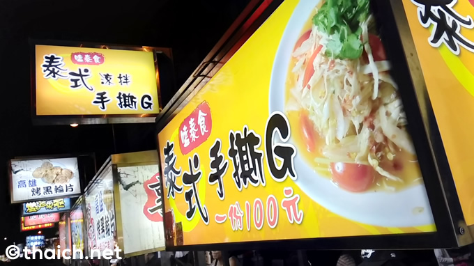 ガイドブックでもよく見る美味しそうな台湾料理の屋台が並ぶ中、タイ料理の屋台も2軒発見。ひとつはソムタムの屋台ですね。