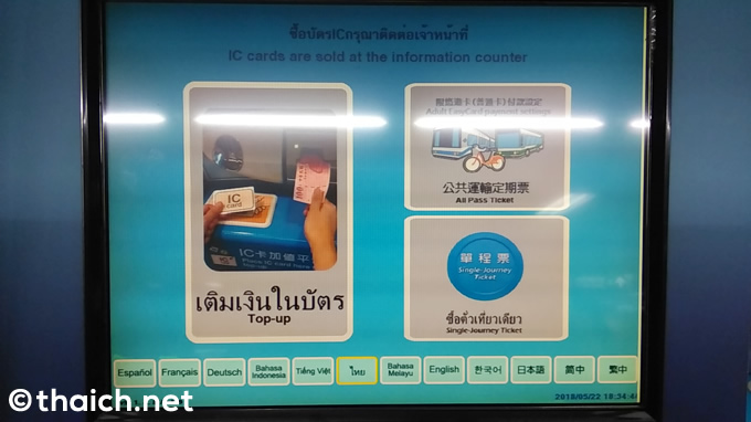 台北捷運(MRT)の券売機はタイ語の表示と音声案内あり【台湾でタイを探す】
