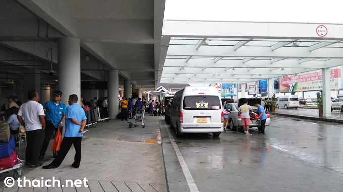 プーケット空港の国内線の建物の外に出ると、そこにはホテルの名前の書かれたパネルを持った、たくさんの送迎の人が待っています。広い場所ではないので、すぐに分かるので安心です。