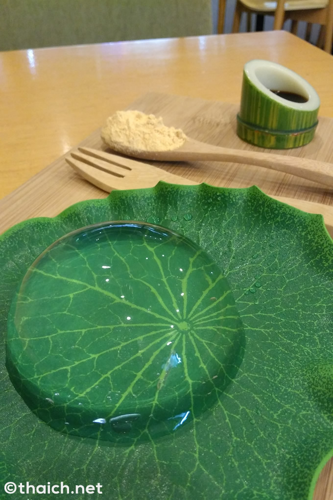 「これはインスタに載せたくなるわ!」と納得の美しさの『”Raindrop” Mizu Mochi』。本家と同様に黒蜜ときなこでいただきます。