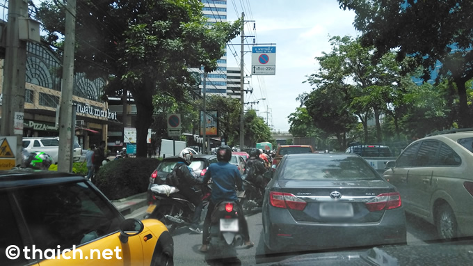 タイ人の友人の引っ越しのお手伝い。ピックアップトラックに荷物を積み、バンコク中心部を移動していました。友人が運転をし、私は助手席です。
