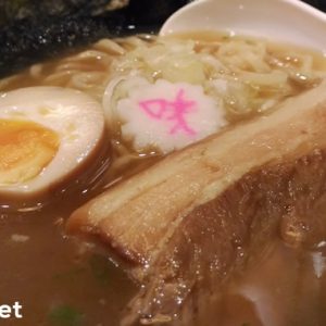 喜多方ラーメンといえば、その特徴は醤油のスープに、平たい縮れ麺と四角いチャーシュー。バンコクでは初めて喜多方ラーメンを見たかも。
