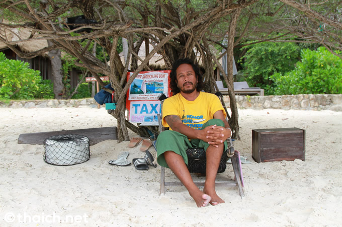 ボートタクシーのお兄さんに写真を撮らせてもらった直後にお客さんがやってきました。(お客さんも宿泊客です)