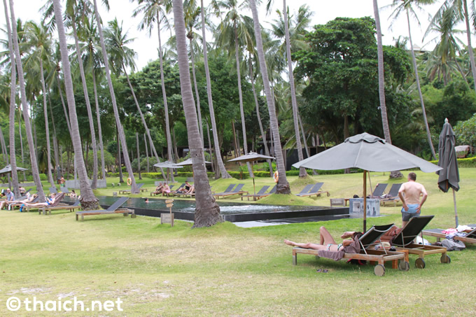 白砂のビーチと芝生に囲まれたプール~タオ島「ハーティエン ビーチ リゾート」