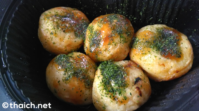 セブンイレブンでも冷凍たこ焼きが売られるようになっていました。価格は5個入りで42バーツ。早速購入して、温めてもらって、持ち帰って食べてみました。