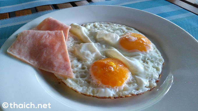 具沢山のオムレツにするか、スクランブルエッグにするか迷いましたが、今回は卵2つの目玉焼きお願いしました。