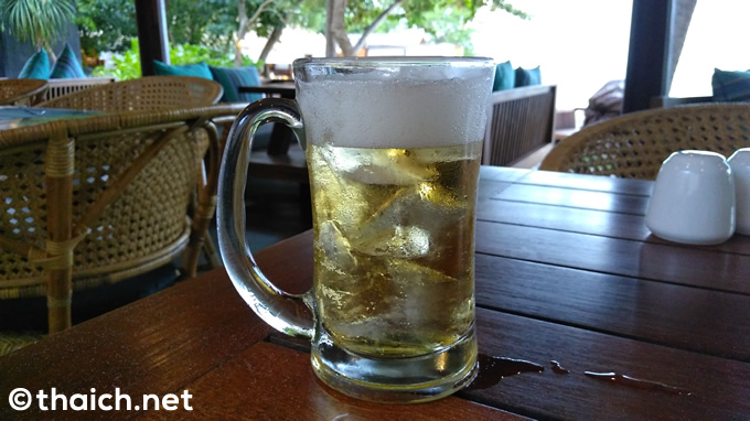 タイ式に氷を入れたビールで喉を潤しながら、ゆっくりとメニュー選び。